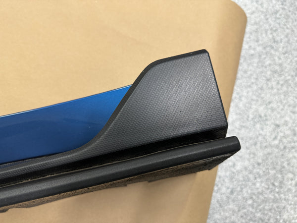 LH/driver side skirt molding. There are some rock chips around wheel opening ends. Lower trim piece has some rock chips from everyday driving. Its all pictured. There were some holes drilled through the very bottom molding piece from some aftermarket trim pieces. Wont be seen. Missing a few white clips, almost impossible to…