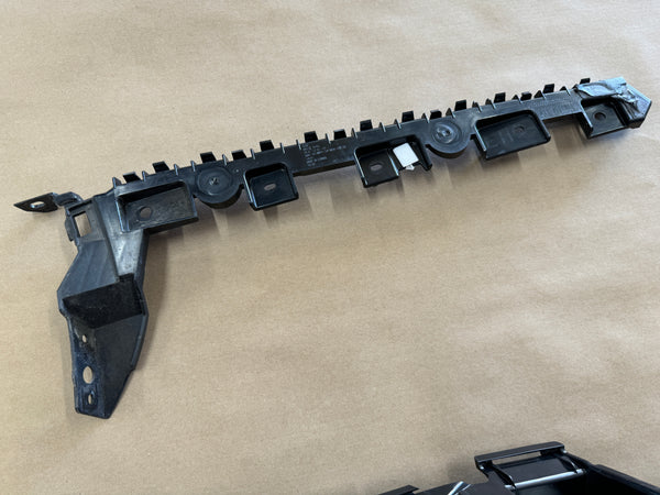 LH/driver side rear bumper brackets. 2 pieces on the driver side rear of vehicle. Do not come with any hardware. No damaged to pieces. May need to replace a couple of white clips, maybe missing or broken. Part numbers are pictured if you need to cross reference them with another model.
